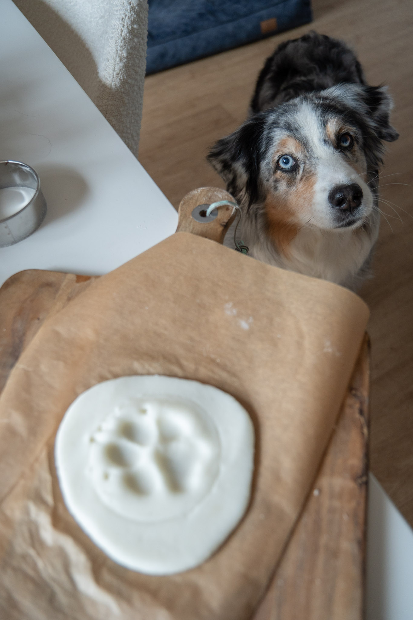 Bitte achte immer darauf: Hunde sollten den Teig nicht probieren – weder roh noch getrocknet!